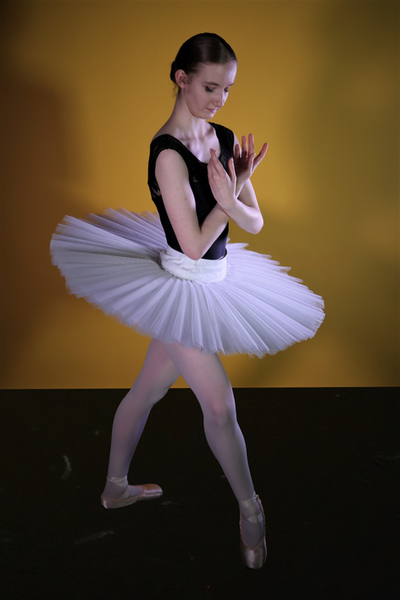 This tutu is the first tutu I ever made. I used 40 denier Italian net and double hand pleating to create the 10 layers that make up the skirt. I also added a hoop for extra support to create the classical pancake silhouette.